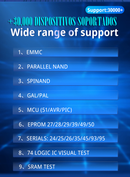Admite trabajar simultáneamente con 4 programadores en cada computadora ideal para desarrolladores y personal de mantenimiento, puede hacer lotes pequeños para producción de chips de alta capacidad. El nuevo programador del modelo T48 (TL866-3G) es la mejora del programador TL866II Plus.